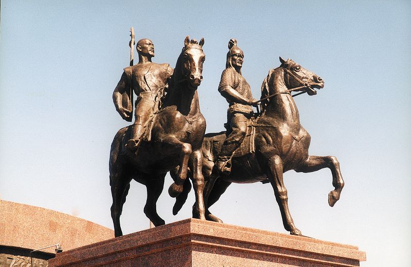 трдің орынбасары болып жүргенінде мені өзіне шақырды. Мәдениет секторының меңгерушісі едім. Қолында өзі сызған ескерткіш жобасы. Екі салт атты адамның сұлбасы, артында самсаған қалың қол әлде қамал.