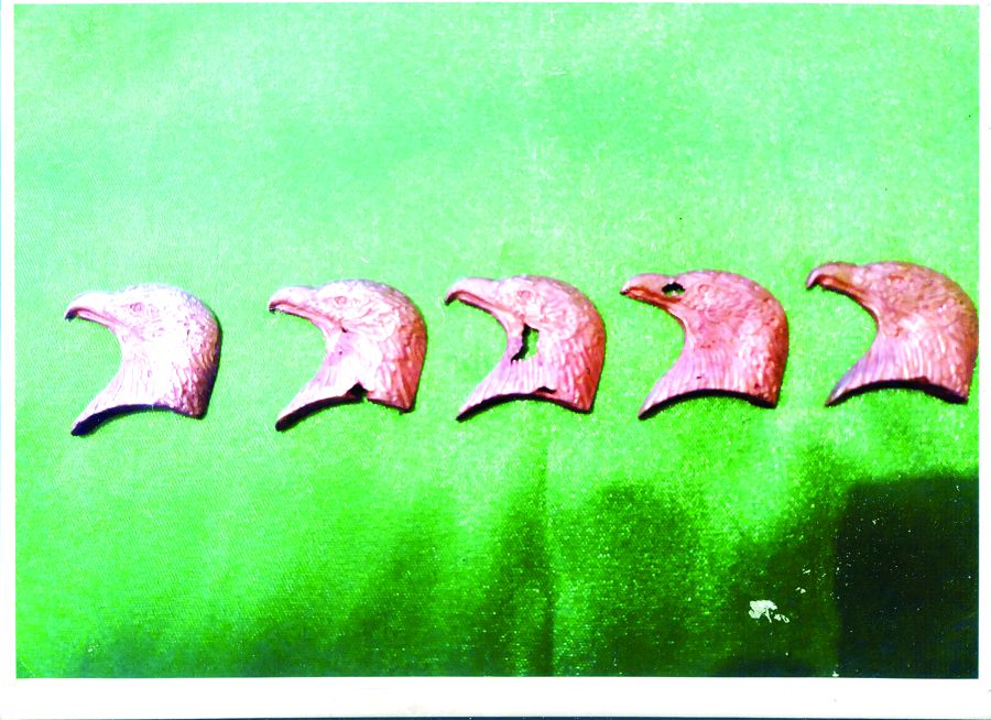 А.Әмірованың қолында сонымен қатар, Алтын Орда хандығы тұсында мәртебесі жоғары қолбасылардың біріне тиесілі болған жауынгер киімімен қатар, сарбаздар тағынатын, бағалы металдан жасалған белбеу түйіндігі, тот басып, кішірейе бастаған қылыш тәрізді бірқатар жәдігерлер бар екен. Әбден тозығы жетіп, шіруге айналған мақтадан тігілген мата бөлшектерінен иректі ою-өрнектерді көруге болады. Л.Н. Гумилев атындағы археология ғылыми-зерттеу институты берген сараптама қорытындысында: «Айдаһар бейнесі бар жалау мен бүркіт басты түйіндіктер жоғары мәртебелі жауынгерге тиесілі болуы мүмкін. Айдаһар бейнесі моңғолдарға билік символы ретінде Қытайдан келген. Жәдігерлердің зираттан қазылып алынуы мүмкін» делініпті.