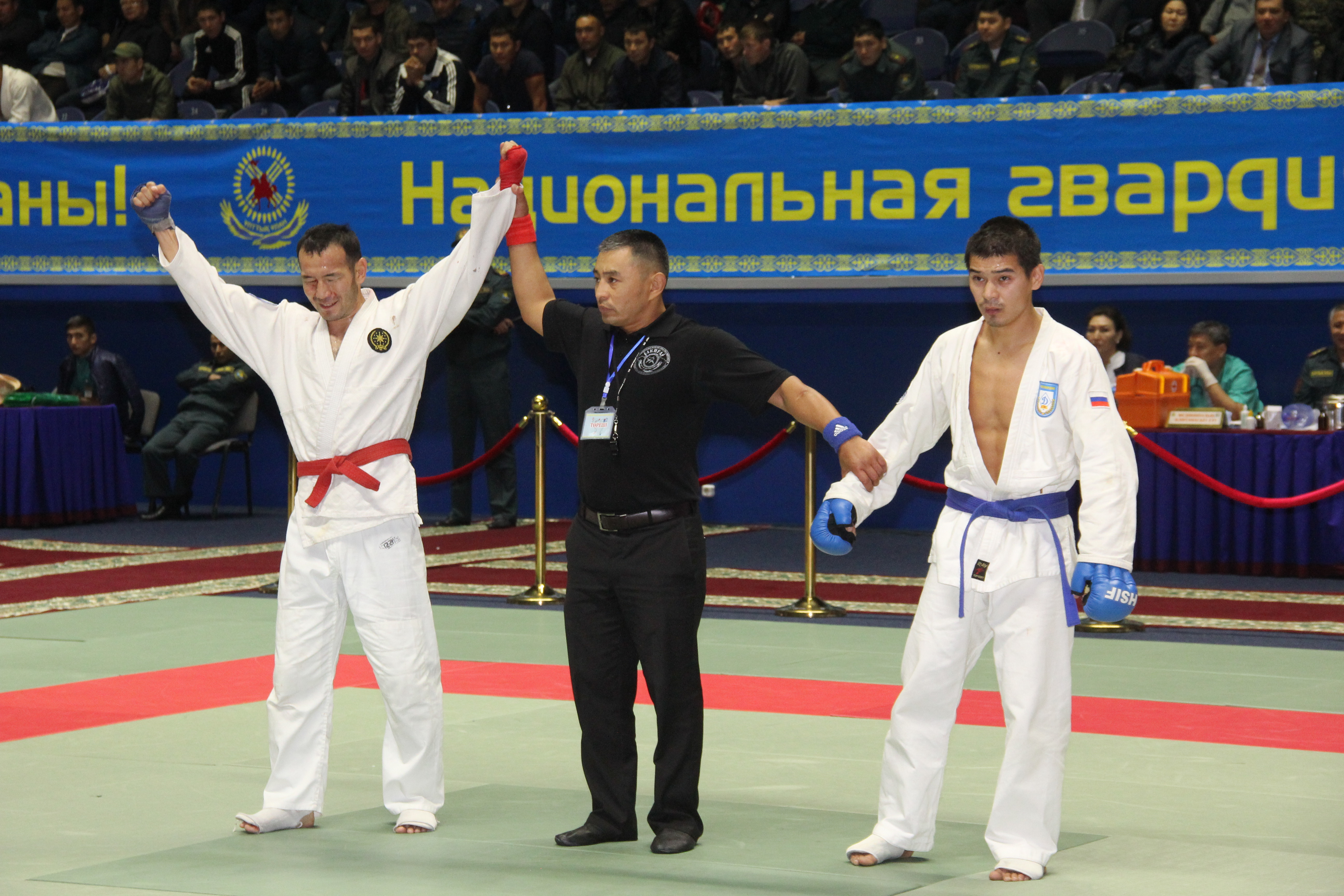 Тотамидегі қызу тартыста 9 салмақ дәрежесі бойынша жеңімпаздар анықталды. 55 келі салмақтағы үздік орынды еліміздің Ұлттық қауіпсіздік комитеті командасының өкілі Ерғали Наханов иеленсе, 60 келі салмақта бірінші орынды Ұлттық ұлан жауынгері Бауыржан Сұлтанов жеңіп алды. Ал 65 келіде қытайлық спортшымен тең ұрыста «Динамо» спорт клубының спортшысы Шыңғыс Жанғазы жеңісті қолдан берген жоқ. 70 келіде ҰҚК спортшысы Назарбек Забиев жеңіске жетті.