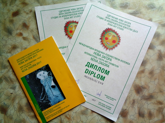 - 2017 жылы қыркүйек айында мектеп Болгариядан дипломдар алды. 8 жастағы Айдар Айтимов пен Ева Москалец көрменің лауреаттары атанды. Әлемдік шараға Айдардың (түрлі-түсті сия, балауыз май ) аралас техникасы бойынша орындалған «Бұғы-қыс», Еваның фломастермен салынған «Түнгі күзетші» суреттері ұсынылды. Оқушылар мұндай айтулы көрмеге алғаш рет қатысуда. Сынып жетекшілері Жанар Шайкенова мен Сауле Пернебаеваны шәкірттерінің жеңісімен құттықтаймыз, - деді білім бөлімінің мамандары.