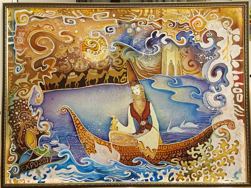 Бояу үндестігінде барынша кірпияз қылқалам шеберінің жұмыстарына қарап отырып, ол батик өнеріне әйелдің ғана бойында болатын ертегідей нәзіктік пен бояулардың қуатын қатар сыйлады десек қателеспеген болар едік. Не құдіреті бар екенін, маталарға салынған мінсіз әлем суреткердің ерекше талғам-болмысымен үндесіп, кемпірқосақтай құбылып, талантпен суарылған құндылыққа айналып шыға келеді. Әйтпесе, бұл өнермен айналысатындар аз емес. Алайда Жапалованың жұмбағы басқа, өйткені ол бұл өнерге шексіз мүмкіндіктер сыйлаумен келеді.