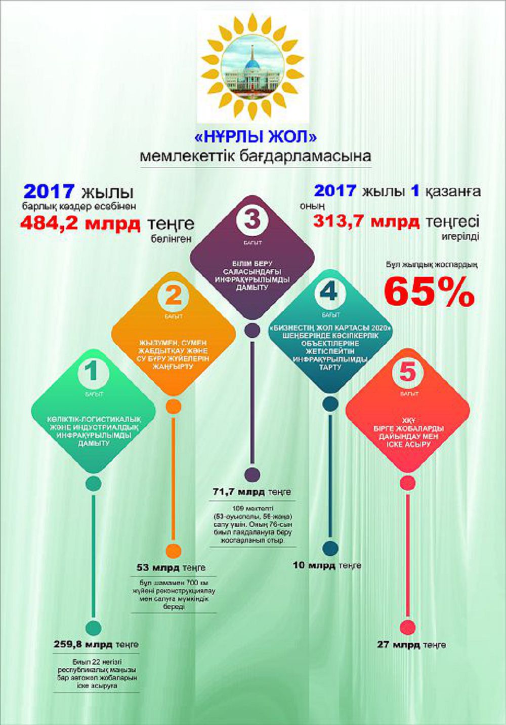 «Нұрлы жол» бағдарламасына 2017 жылы 484,2 млрд тг бөлінген