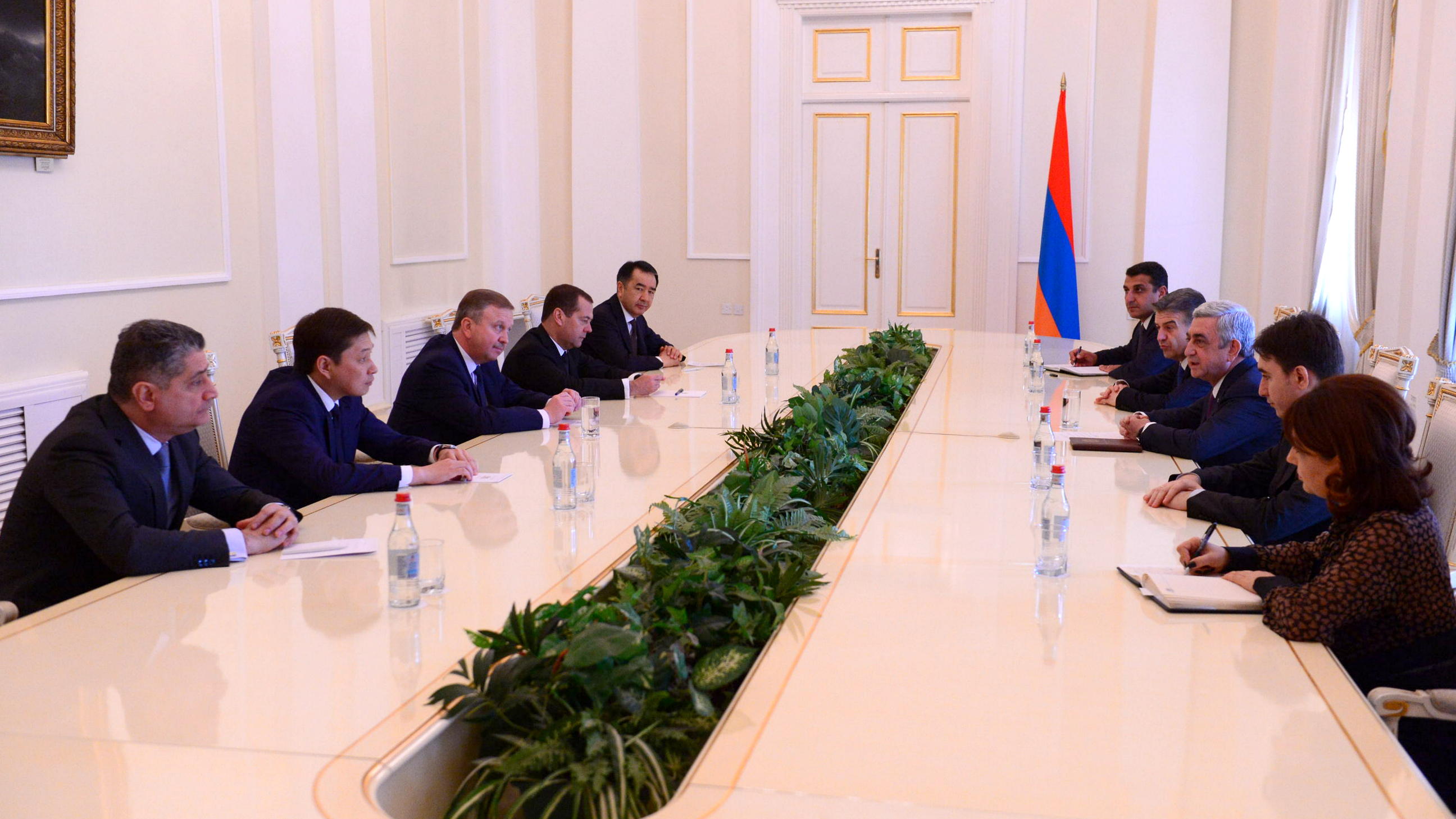 ЕҮАК отырысы басталар алдында Армения Президенті С. Саргсян Ереванда жұмыс сапарымен жүрген Қазақстан, Қырғызстан, Ресей және Беларусь Премьер-Министрлерін қабылдады. Қонақтарға ізгі ілтипатын білдірген соң Серж Саргсян аталған кездесу қарым-қатынастарды одан әрі нығайту жолындағы тағы бір маңызды қадам болатынына сенім білдірді.