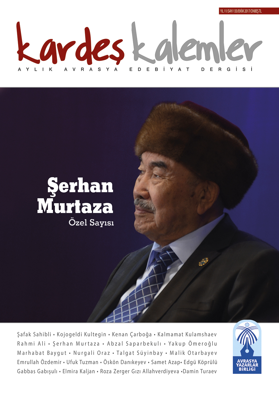 Журналға Қазақстанның Түркиядағы елшісі Абзал Сапарбекұлының «Классик жазушы», Еуразия Жазушылар қауымдастығының төрағасы Якуб Омароғлының «Анасына ескерткіш тұрғызған жазушы», жазушы Мархабат Байғұттың «Шыңдағы Шерағаң», жазушы Нұрғали Ораздың «Қазақтың ұлттық манифесті», журналист Талғат Сүйінбайдың «Шерағаңа сыр ақтарып қайтқанда...», түрік қаламгері Емруллах Өздемирдің «Түркіге ортақ туынды» атты мақалалары, Ш.Мұртазаның «Ай мен Айша» романы және «Қызыл Жебе» роман-эпопеясының үзінділері енді. Материалдарды түрік тіліне аударып, баспаға дайындаған жазушы Мәлік Отарбаев.