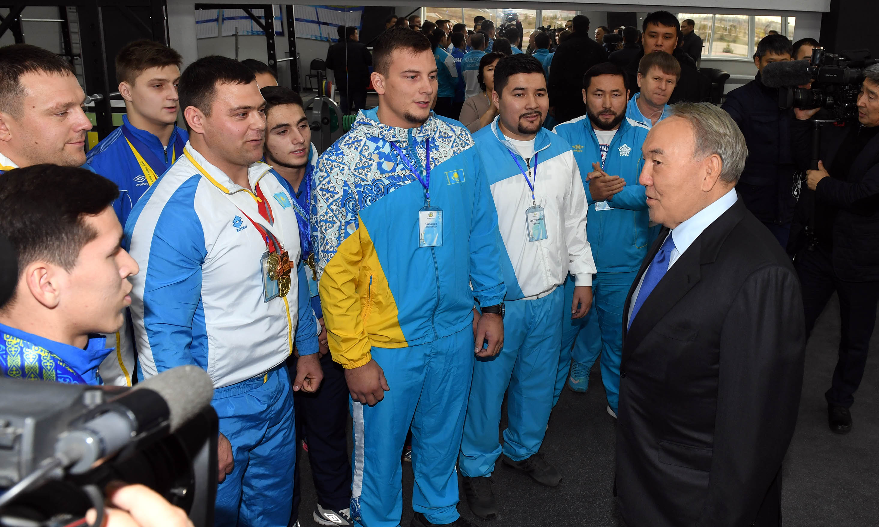 Елбасы спорт залын аралап көріп, жергілікті спортшылармен, сондай-ақ Қазақстанның ауыр атлетикадан жасөспірімдер құрамасының мүшелерімен әңгімелесті.