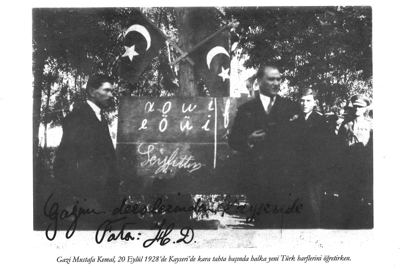 Көрмеге қойылған фотолар Ататүріктің өзі негізін қалаған екі ұйымның бірі «Түрік тарихы ұйымының» архивінен алынған екен. Астаналықтар мен қала қонақтарына көрмеде тарихи маңызы зор 40 фото ұсынылды. Фотосуреттер арасында көпшілікке таныс емес сирек суреттер де қойылған. Әсіресе, 1928 жылы 20 қыркүйекте Кайсериде түсірілген Гази Мұстафа Кемалдің жаңа латын әліпбиін тақтаға жазып, халыққа үйретіп тұрған фотосы көпшілік назарына ілікті.