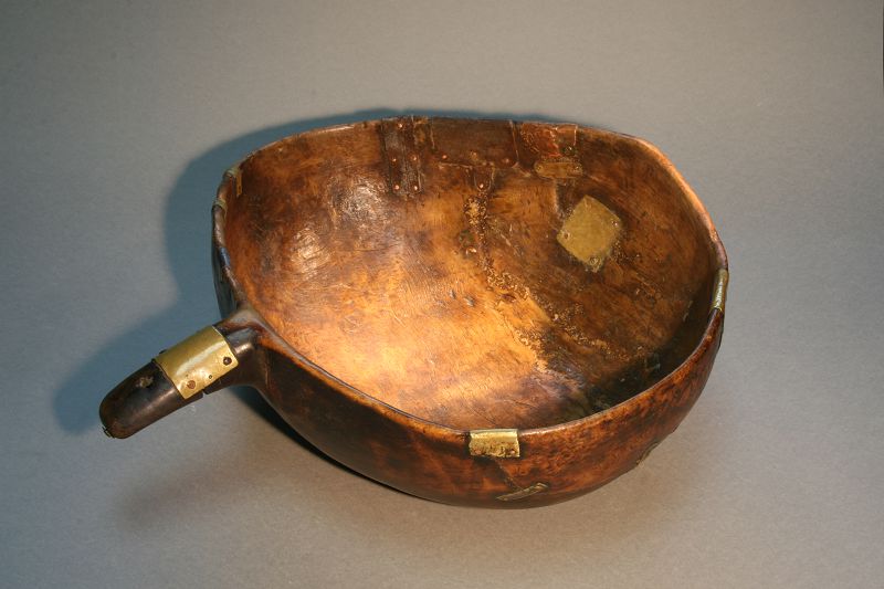 Зерттеуші С.Бекешовтің 2002 жылы жазылған «Қазақ­­тың дәстүрлі ағаш ою өнері» диссертациялық жұ­мысы­­ның 43-бетінде жоғарыдағы саптаяққа ғылыми си­пат­тама беріліпті. Онда: «Саптаяқ тұтас ағаштан ойыл­ған, сабы қысқа, жолға алып жүруге қолайлы, ыдыс­тың бірнеше жерін жез қаңылтырмен жамаған, ұзын­­дығы 37 см, биіктігі 24 см, сабының ұзындығы 12 см, сы­йым­дылығы 1,5 литр» делінген.