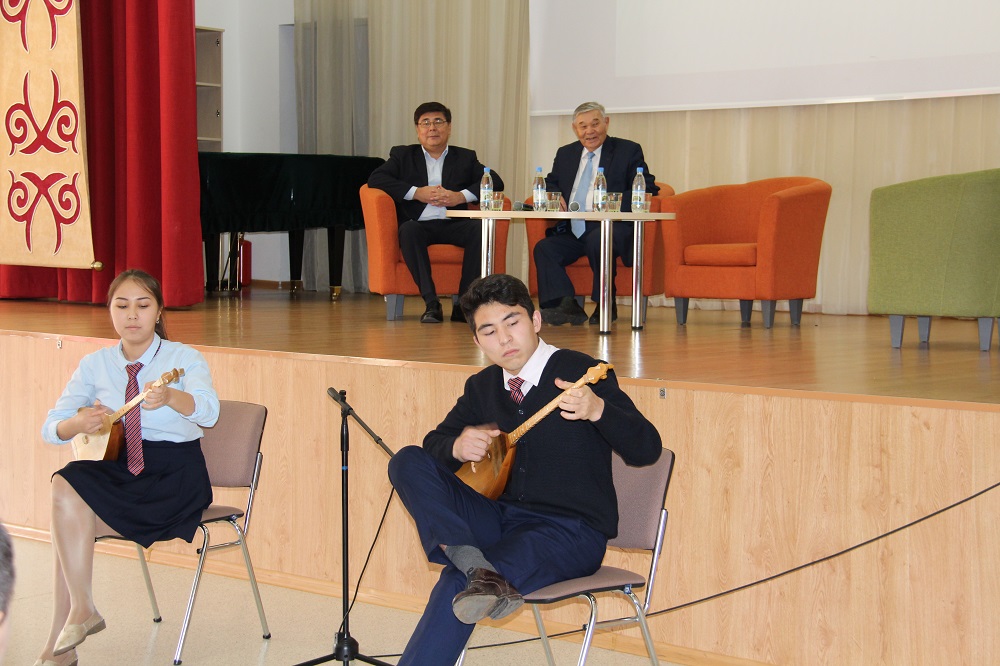 Кездесуге «Егемен Қазақстан» газетінің ардагері, Қазақстанның құрметті журналисі Мамадияр Жақып пен басылымның Алматыдағы тілшілер қосынының басшысы Нұрғали Ораз қатысты. Басқосу барысында басылымдағы мұғалімдерге арналған арнайы «Тәлім», «Білім» беттерінің үздіксіз шығып келе жатқандығы, бұл өз кезегінде ұстаздар мен ата-аналардың, өсіп келе жатқан өскелең ұрпақтың игілігіне бағытталған жоба екендігі кеңінен айтылды. Оқушылар басылымның арғы-бергі тарихы, өткені мен бүгіні жайлы көптеген мағлұматқа қанығып, ағаларына сауалдарын жолдады. Жоғарғы сынып оқушылары күмбірлетіп күй ойнап, жырдан шашу шашты.
