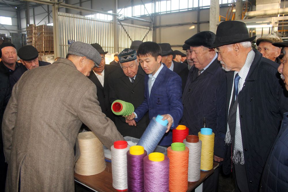 Ардагерлер ең алдымен «Оңтүстік» арнайы экономикалық аймағында орналасқан «БалТекстиль» ЖШС-нің кілем фабрикасына атбасын бұрды. Іргетасы 2012 жылы қаланған фабрика бүгінде Орта Азиядағы кілем өндіретін ең ірі өндіріс ошағы саналады. Бүгінде мұнда 235 адам жұмыспен қамтылған. Қазіргі таңда фабрика өнімдері Қырғызстан, Тәжікстан, Әзірбайжан, Ресей, Ұлыбритания, Германия және Францияға экспортталуда. Кәсіпорын басшылығының айтуынша, биылдың өзінде зауытқа шетелдік тапсырыс берушілер саны 20-дан асыпты. Фабриканың жіп иіру цехы мен кілем тоқу бөлімдерін аралап көрген ардагерлер кәсіпорын жұмысына оң бағасын берді.