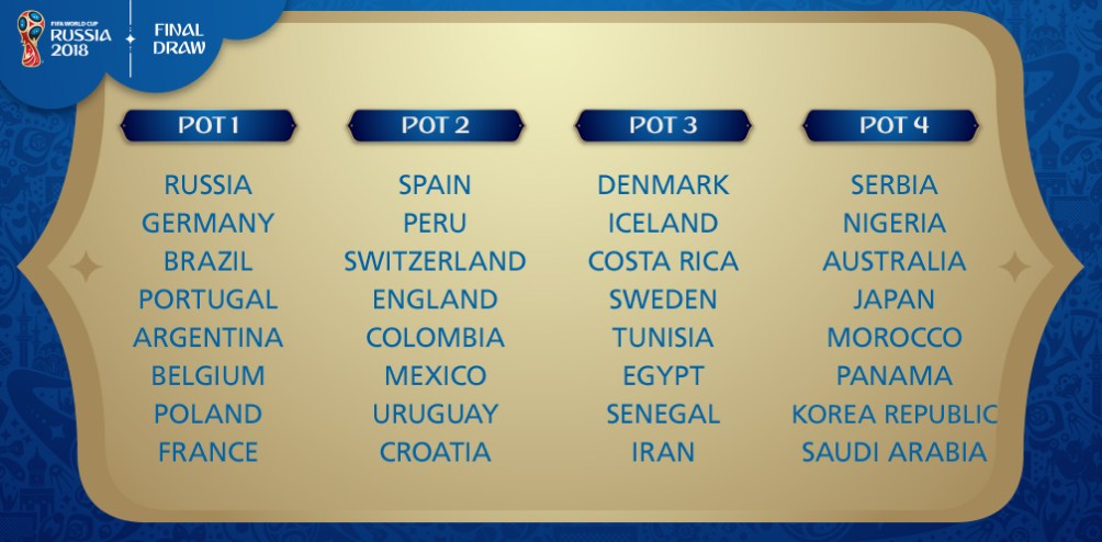 Сонымен, келер жылы Ресейде өтетін Әлем чемпионатының 32 командасы анықталды. ФИФА оларды рейтингтеріне сәйкес 4 себетке бөлді. Әр себеттің командалары бір-біріне топ ішінде қарсылас атанбайды. Яғни жеребе тарту кезінде әр себеттен бір командадан алынады. Сонымен қатар, бір топта еуропалық командалар саны екеуден аспауы тиіс. Болжам бойынша "өлім тобына" - Франция (7), Уругвай (17), Сенегал (32), Сербия (38) құрамалары түсуі мүмкін. Естеріңізге сала кетсек, жеребе тарту рәссімі 1-желтоқсан күні Мәскеудегі Кремльде өтеді.