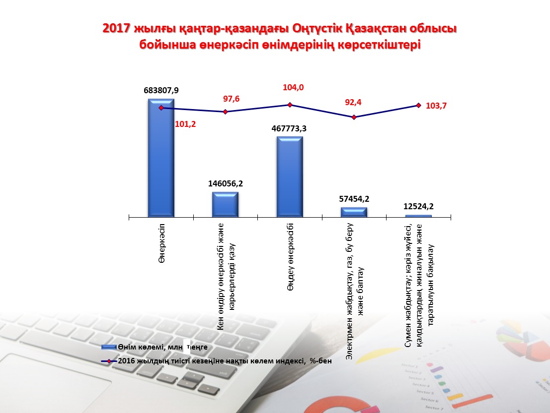 «Осы жылдың он айында өңірдегі өнеркәсіп кәсіпорындарымен 683 808 млн. теңгенің өнімі өндірілді. Соның ішінде кен өндіру өнеркәсібі және карьерлерді қазу саласымен 146 056 млн. теңге, өңдеу өнеркәсібінде 467 773 млн. теңге, электрмен жабдықтау, газ, бу беру және ауаны баптауда 57 454 млн. теңге, сумен жабдықтау; кәріз жүйесі, қалдықтардың жиналуын және таратылуын бақылау бойынша 12 524 млн. теңгенің өнімі өндірілді», - деді А.Әбілдабеков.
