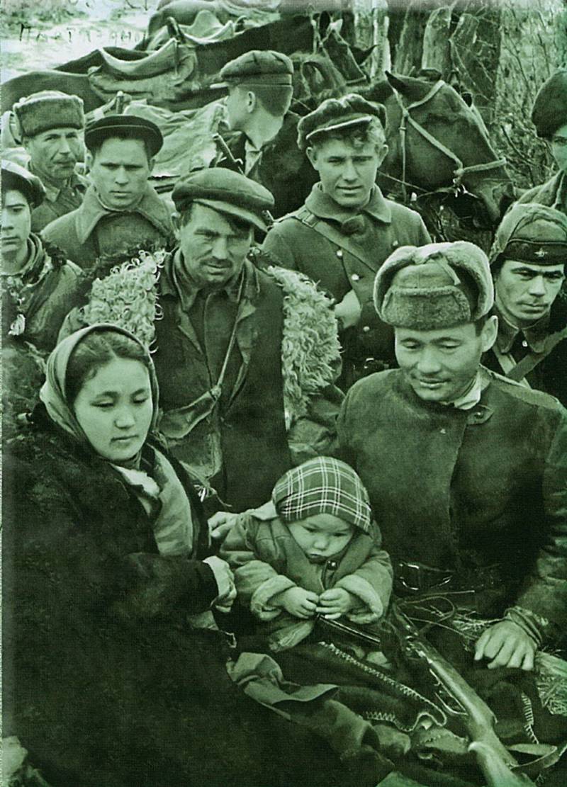 Алғашқысында Майя ата-анасының ортасында, ал кейінгісінде араларында Жылбек аға мен Жамал апа да бар партизандар қоршаған ат арба үстінде отыр. Бұл суреттердің біреуін 1943 жылдың басында орманға «үлкен жерден» қару-жарақ жеткізуші ұшақпен бірге келген әскери фототілші, ал екіншісін сол жылы күзде 2-ші Клетня партизан отрядының Қызыл армия бөлімдеріне қосылған кезінде майдандық газет қызметкерлері түсіріпті. Аталмыш рәсімдерді Жылбек аға 1944 жылы жараланып, Мәскеу госпиталінде емделіп жатқанда «Ұлы Отан соғысы кезіндегі партизандар қозғалысы» атты архив басқармасынан алдыртыпты.