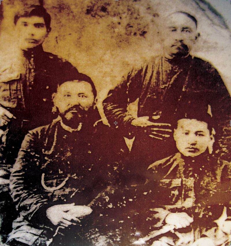 Суреттерде: 1. Отырғандар Әбдікәрім болыс және баласы Шабдан,