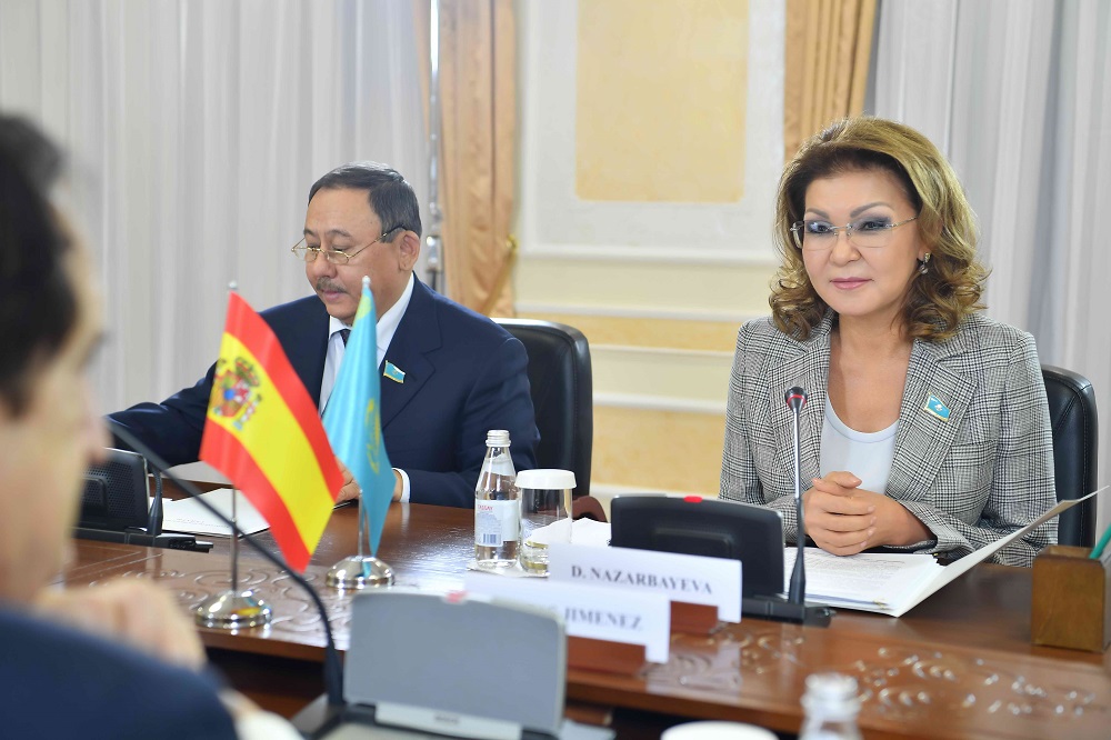 Д.Назарбаева Қазақстан мен Испания арасындағы сауда айналымын өрістету қажеттігін атап өтті және «ЭКСПО-2017» халықаралық көрмесіне қатысқаны үшін испан тарапына алғыс айтты. «Жоғары мәртебелі Король Фелипе VI-ні көрменің құрметті қонағы ретінде қабылдау бізге зор мәртебе болды. Испания Ұлттық күнінің салтанатты ашылуына Депутаттар конгресінің Төрағасы А. Пастор қатысты. Бұл біздің қатынастарымыздың кезекті даму қадамы болып есептеледі», - деп атап өтті сенатор. ЭКСПО аясында «Астана» халықаралық қаржы орталығы, Халықаралық IT-стартаптар технопаркі және БҰҰ аясындағы «Жасыл» технологияларды дамыту және инвестициялық жобалар орталығының жұмыс істейтіні туралы испан парламентшісі хабардар етілді.