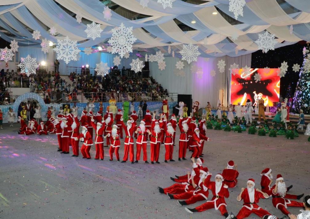 Кеш барысында балаларға ертегі әлемінің кейіпкерлері мерекелік қойылым көрсетіп, балалармен бірге жаңа жылдық шыршаны айналып, ән айтып, би билеп, түрлі қызықты ойындар ойнатты.