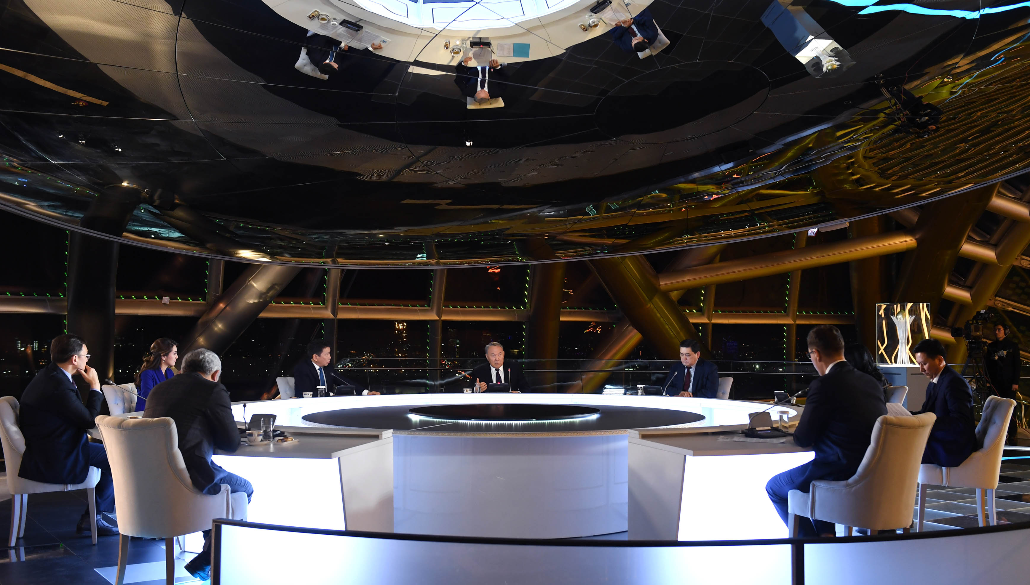 Сұхбат барысында Нұрсұлтан Назарбаев "Қазақстан" телеарнасының тілшісі Мұхтар Түменбаевтың "Қазіргі қоғамда белгілі бір қозғау болуы керек, қоғамдық сана өзгеруі керек. Сіздің "Болашаққа бағдар: рухани жаңғыру" бағдарламаңызда осыған жетудің біршама жолдары көрсетілген. Сол бағдарламы жүзеге асыру үшін құрылған ұлттық комиссияның жұмысына көңіліңіз тола ма?" деген сұрағына жауап берді.