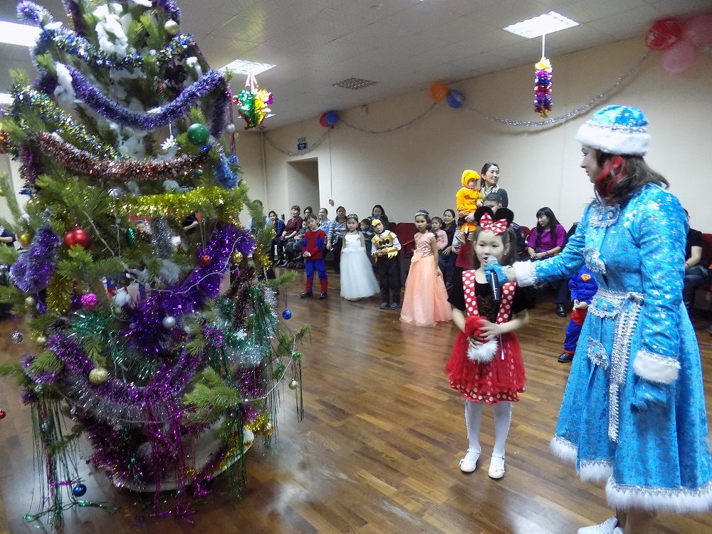 Осылайша ІІБ үлкен мәжіліс залы жаңа жыл мерекесіне сай әсем безендіріліп, сиқырлы әлемге айналды, ал ересектер балаларға мерекелік көңіл-күй сыйлау үшін ертегі кейіпкерлерін сомдады.