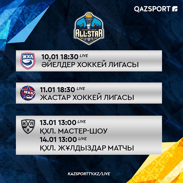 ҚХЛ жұлдыздарының кездесуін «QAZSPORT» телеарнасынан тікелей эфирде көре аласыздар. Төменде көрсетілімдер кестесінің уақыты көрсетілген.