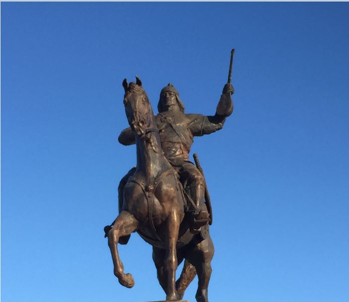 Ескерткіштің авторы – мүсінші, Қазақстан Суретшілер одағының мүшесі Серік Мәтениязов. «Батыс Альянс строй» мекемесінің басшысы Әділ Жұбанов тұғырын орнатты. Ескерткіштің жалпы биіктігі – 10 метр 80 см. Қоладан құйылып, тұғыры темір-бетонмен жасалып, гранитпен қапталған.
