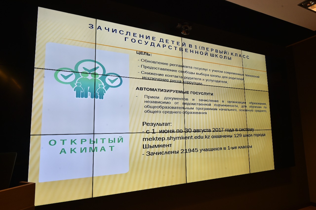 Қазірдің өзінде Шымкент қаласында білім саласы бойынша біршама смарт жүйелер жүзеге асырылуда. Мәселен, оқушылардың білім сапасын жақсарту мақсатында облыстағы 779 мектепте «Күнделік» жүйесі енгізілді. Сонымен қоса адами фактор мен сыбайластық әрекетті болдырмау мақсатында балғындарды балабақша мен 1-сыныпқа электронды түрде қабылдау жобасы енгізілді. Қазіргі кезде осы қызметтің арқасында 23 мыңнан астам бала қаланың балабақшаларына сәтті орналасса, тіркелу үшін 64 мыңнан астам жолдама берілген.