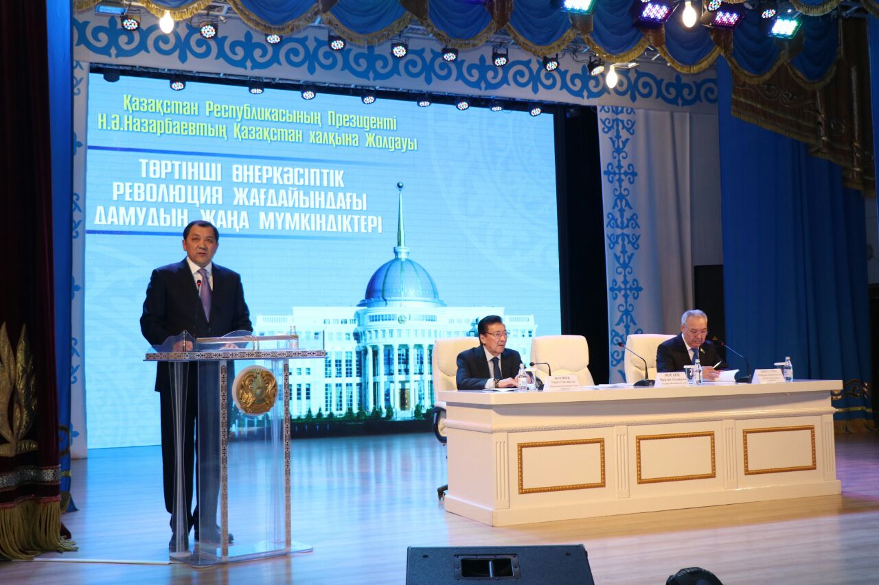Нұрлан Ноғаев өз сөзінде Атырау облысында мемлекет басшысының «Төртінші өнеркәсіптік революция жағдайындағы дамудың жаңа мүмкіндіктері» атты Қазақстан халқына Жолдауында қойылған міндеттерді жүзеге асырудың нақты жоспары дайылғанын атап өтті.