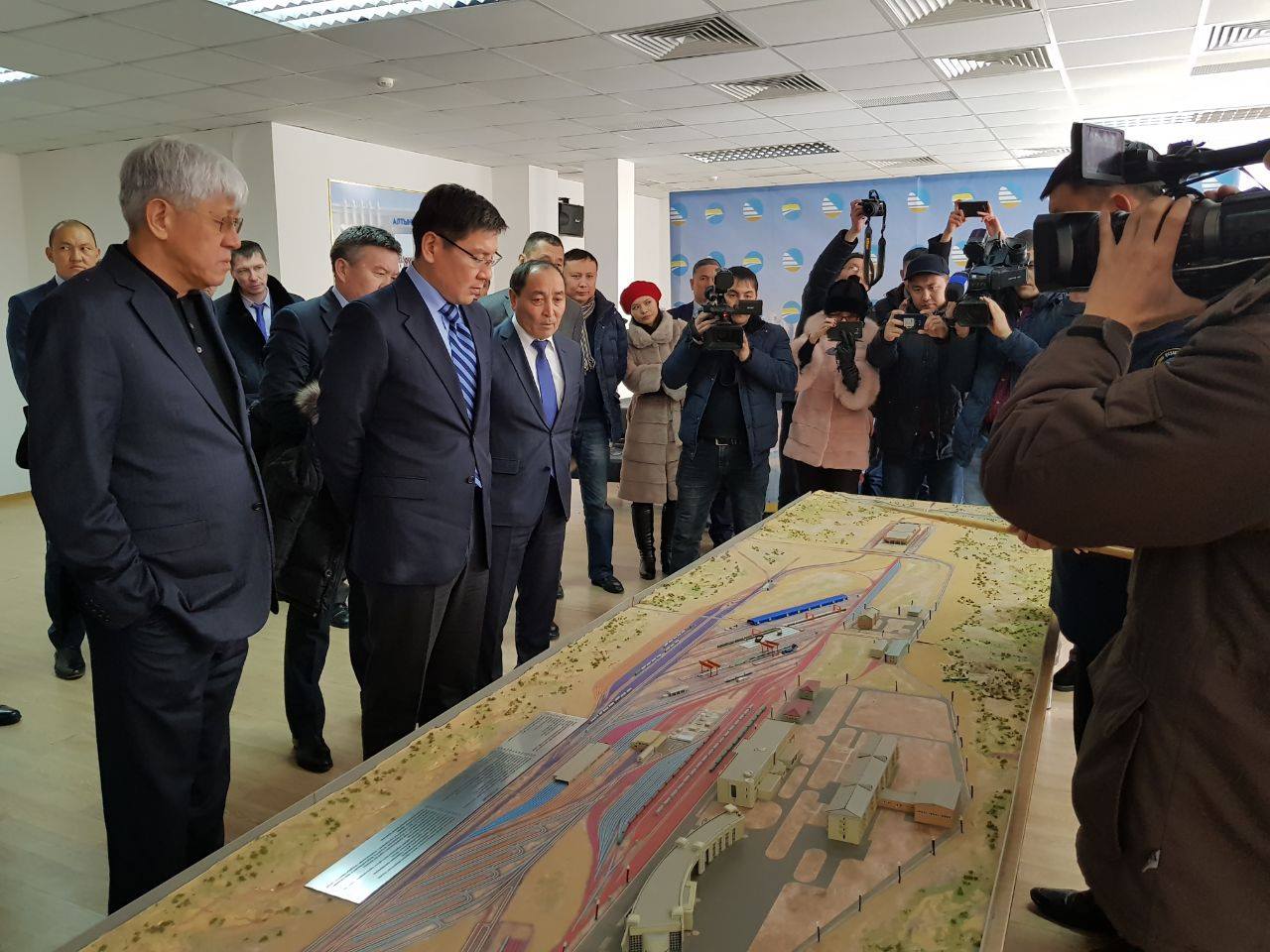 Сондай-ақ Асқар Жұмағалиев арнайы экономикалық аймақта құрлысы басталған «Нұр жолы» кедендік бақылау бекетіндегі жұмыстарды көріп, Құрғақ порт жобасы аясында атқарылған іс барысымен танысты.