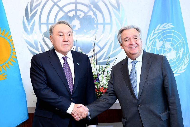 Сондай-ақ Мемлекет басшысы Біріккен Ұлттар Ұйымының Бас хатшысы Антониу Гутерришпен кездесті. Әңгімелесу алдында Нұрсұлтан Назарбаев Біріккен Ұлттар Ұйымының Құрметті қонақтар кітабына қолтаңба қалдырды. Кездесу барысында тараптар Қазақстанның БҰҰ Қауіпсіздік Кеңесіндегі төрағалығымен байланысты өзекті мәселелерді талқылады.