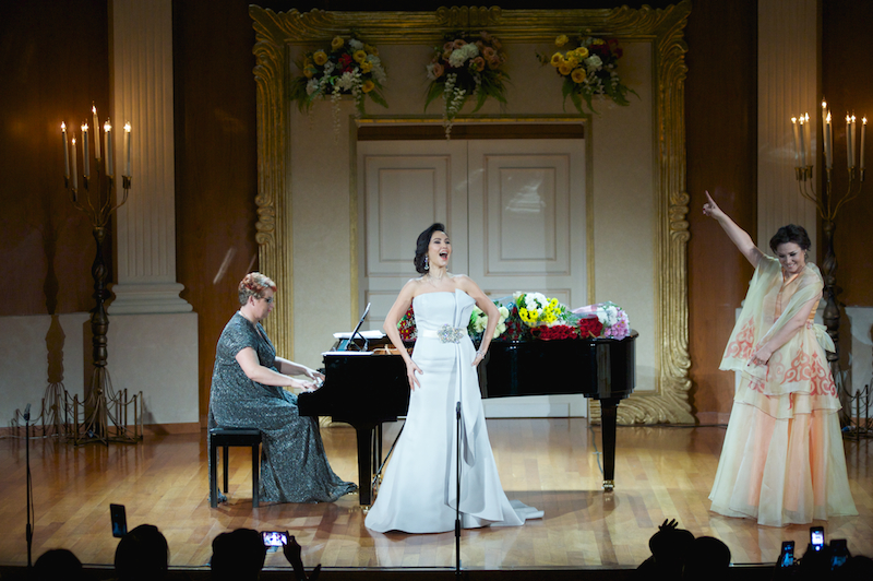 Таңданатыны жоқ, Моцарттың «Дон Жуаны» қашанда операның шыңы саналып келген болса, «Фигароның үйлену тойы» тыңдармандар үшін ең бір сүйікті шығармалардың бірегейіне айналған. Кез келген труппаның репертуарынан табылатын ескіден келе жатқан атақты опера мерекелік атмосферасымен миллиондаған тыңдарманның жүрегін жаулап алғаны рас. Аталған кеште дәл осы «Фигароның үйлену тойы» операсынан графиня каватинасын орындау арқылы Әйгерім Сәрсенова талғамды тыңдарманның көңіл пернесін дөп басты. Ол лирикалы-драмалы сопраносымен сызылта орындап бастағанда-ақ демін ішіне алған зал бір сәт тынып қалған. Мәнерлі әуен лебімен астасқан кейіпкер сөздерінің жұмсақтығы мен жылуы қатар ескенде пейзаж қанықтығы айқындала түсіп, жарқын да нәзік ария екпінді ұмтылыспен аяқталғанда барып, әлгіндегі тыныштық «бәсе» десіп желпініскен қауымның ризашылыққа толы қошеметіне ұласты. Одан кейінгі кезекте әлемдік опера репертуарынан В.Беллинидің «Капулетти мен Монтекки» операсынан Джульетта ариясы, А.Каталанидің «Валли» операсынан Валли ариясы, «Манон Леско» операсынан Манон ариясы, «Богема» операсынан Мюзетта вальсі қатарынан шырқалды.