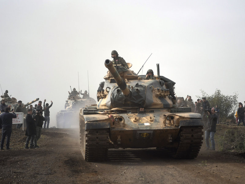 Түріктің жаяу әскері Сирияның солтүстігіне сенбі күні басып кірді. Сейсенбі күні Түркия үкіметі төрт күн ішінде Африн қаласында 260-тан астам сириялық күрд әскерлерін өлтіргенін хабарлады. Сонымен бірге, Біріккен Ұлттар Ұйымы аймақтағы 324 мың бейбіт тұрғынға қауіп төніп тұрғанын айтты.