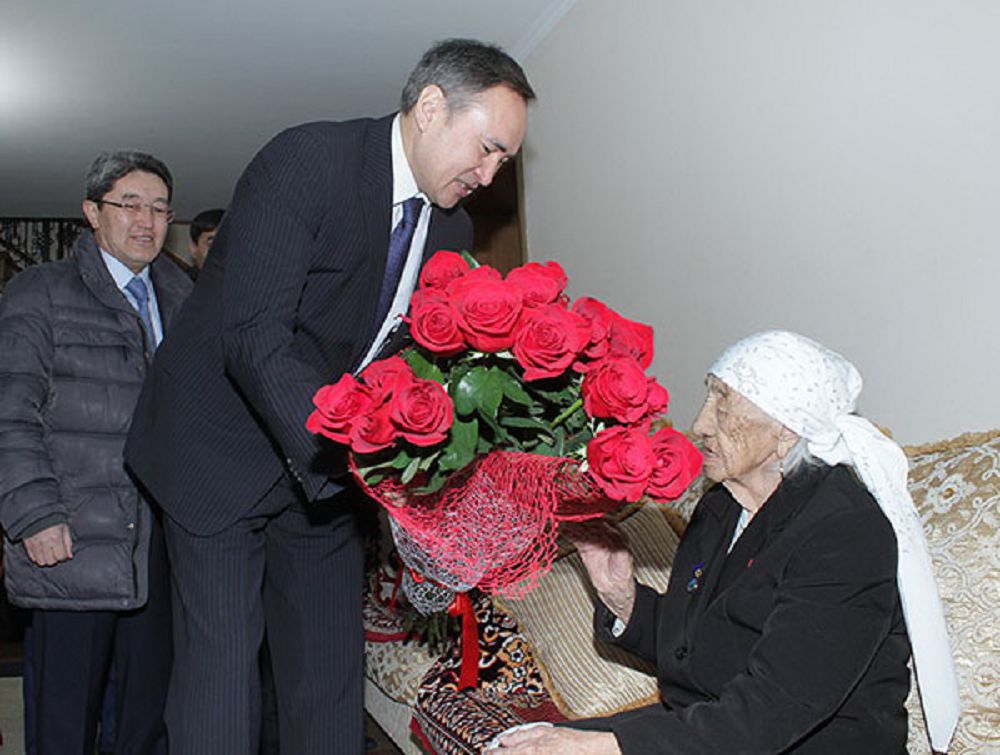 Даңқты жерлесімізді ғасыр тойымен Жамбыл облысының әкімі Асқар Мырзахметов үйіне арнайы құттықтап барып, сый-сияпат көрсетті. Әкім қарт диқанның еңбектегі ерлігін, өнегелі өмірін әрбір қазақ баласы өзіне үлгі тұтатынын жеткізді. Аңыз адам арнайы құттықтап келген әкімге ақ батасын беріп, ризашылығын білдірді. Әрдайым еліміздің тыныштығына, бірлігі мен татулығына шүкіршілік ететінін жеткізді.