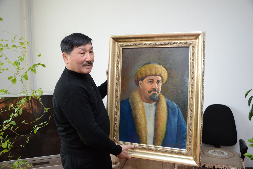 – Үш бидің кескін-келбеті жұрттың санасына Тоқболат Тоғысбаев ағамыздың портретімен шегеленгені мәлім. Танымал суретші үш бидің бейнесі үшін көптеген тарихи құжаттармен танысып, құнды деректер іздеді. Тағы бір айта кететін жайт, қазір елімізде Суретшілер одағының 1250-ге жуық мүшесі бар. Жазушылар одағының мүшесі 780-ақ. Осыдан-ақ Суретшілер одағы қарым-қабілетінің қаншалық өскенін бағамдай беріңіз. Өйткені Астана қаласының өзінде 110-нан аса мүшесі бар, ал 2009 жылы осында қоныс аударғанымда олардың саны елуге жетер-жетпес қана болатын. Қазір олардың саны екі есеге көбейді. Соның нәтижесінде әр өңірдегі танымал тұлғалардың тарихи портреттерін түгендедік. Ал соңында іздеушісі, айтушысы жоқтықтан ұмыт қалып қойғандары да баршылық. Мысалы, Ықылас Дүкенұлына қатысты деректерді екі жыл бұрын іздегенімде соның нақты куәсі болған жайым бар. Күйшінің өзі ойнаған, саусақтарының ізі қалған қобызын Тараздағы музейде ұстап көрдім. Сонда ұрпағы тұрады. Ол кісінің туыс немересі, «Хабар» телеарнасының бас операторы Еділ Ермекбайұлы өзі қобызшы, кәсіби музыкалық білімі бар азамат. Еділ бауырыммен бірге Ықаңның туған жерін, табанының табы қалған даласын аралап, жаздыгүні ол кісінің портреті дүниеге келді. Алматыда Ықылас Дүкенұлы атында ұлт аспаптары музейі бар. Бірақ атамыздың ол жерде портреті жоқ. Тек өмірбаяны ғана жазулы тұр.
