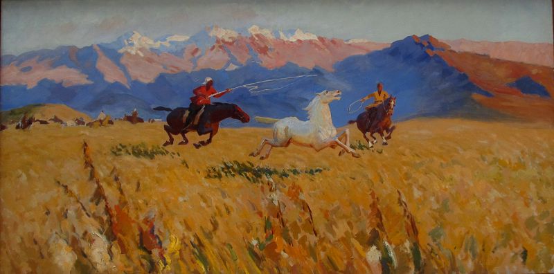 Қылқалам шеберінің бұл еңбегі жарық көре сала өнертанушылардың биік бағасына ие болды. Бұл тұрғысында «Асауға құрық салу табиғат пен адамның гимні секілді тасқындаған күй» деп тегін айтылған жоқ. Терең толғаныстан туған туындыны Третьяков галереясы сатып алды. Мамандар кенеп бетіндегі айрықша сұлба – асауды бағындыру динамикасының толық көрінісін ашып, қазақ жігіттерінің шексіз батылдығы мен ерлігін дәріптеген теңдессіз мадақ жыры деп бағалады. Сары дала, жарық пен тау жоталарының тізбектелген көлеңкесі, ақ боз аттың шабысы мен қос салт аттының қимылы көрерменнің көңілі мен қиялын әп-сәтте өзіне аударып әкетеді.