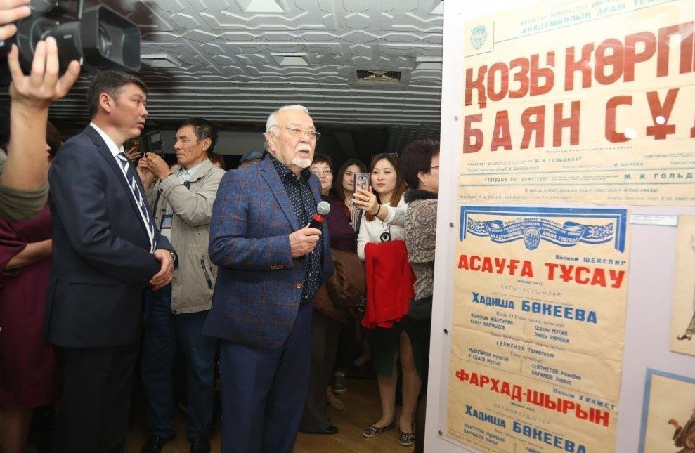 Музей экспонаттарымен келушілерді таныстырған Қазақстанның Халық әртісі Асанәлі Әшімов сахна тарландарының иісі сіңіп, киесі жұққан киімдері мен бұйымдарына зер сала қарап, «Әрқайсысымыз үшін маңызы жоғары осынау қадірлі бұйымдарға мен бей-жай қарай алмаймын» деді тебіреністі үнменен. Ал Қазақстанның Халық әртісі Сәбит Оразбаев «Бұл жәдігерлердің еліміз тарихында алар орны ерекше, біздің баға жетпес алтын қорымыз» деп музей сөресінде сап түзеген әр жылдардағы спектакльдер афишасына көрермендердің назарын аударды. Сонымен бірге Ә.Мәмбетов қызмет еткен жылдарды еске түсіріп, талантты режиссердің театрдың бағына біткен ерекше тұлға екендігін айтып, шағын естеліктерімен бөлісті. Музей жетекшісі Н.Тамабекқызы театрландырылған көрініс барысында Сәбира Майқанова, Нұрмұхан Жантөрин, Шәкен Айманов, Хадиша Бөкеева, Шолпан Жандарбекова, т.б. сахна саңлақтарының спектакльдерде киген костюмдерімен таныстырды.