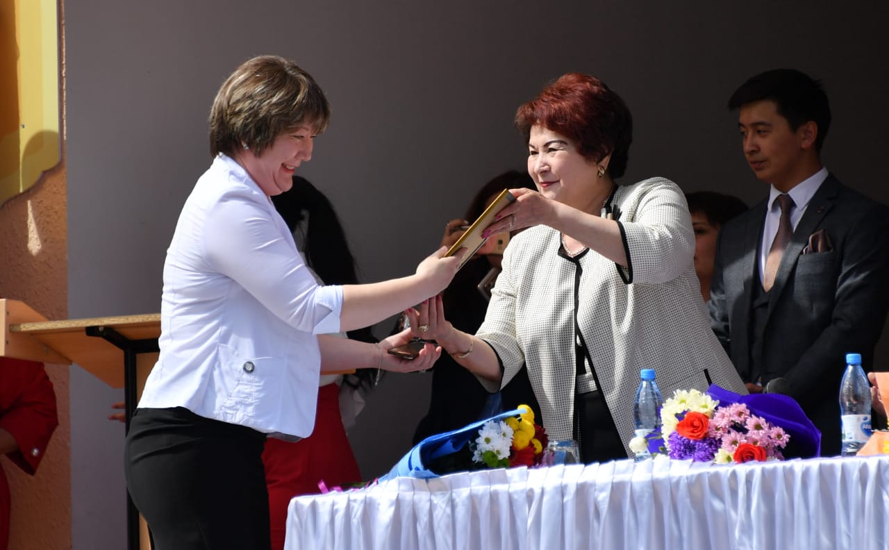 Соңғы қоңырау салтанатында мектеп директоры, «Қазақстан Республикасы білім беру ісінің құрметті қызметкері» Базаркүл Сағындыққызы Сыздықова түлектерге ақ жол тілеп, жылы лебізін білдірді.