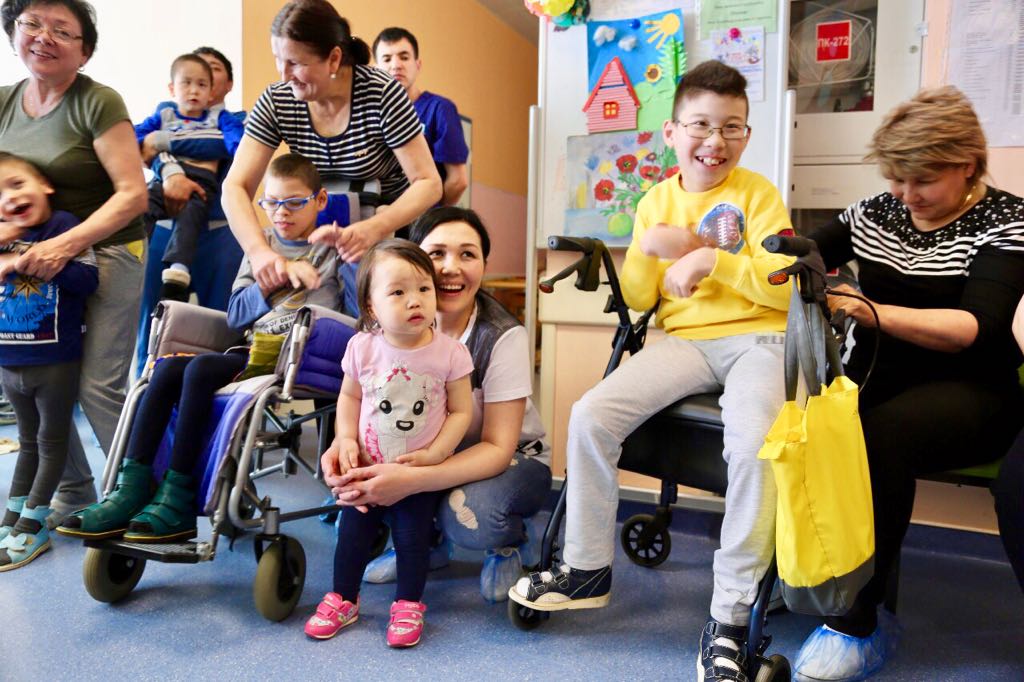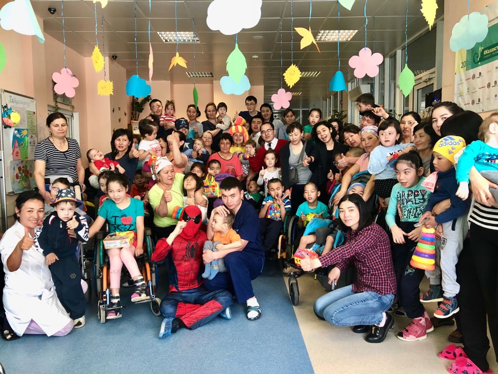 Қазір орталықта сал ауруына (БЦП) шалдыққан 3-15 жас аралығындағы 50 бала ем алуда. Жастар балалар жақсы көретін кейіпкерлердің бейнесінде келіп, олармен би билеп, сыйлықтар табыстады. Орталық емделушілері ғана емес, олардың ата-аналары да мерекелік көңіл күйге еніп, балаларымен бірге би билеп, олардың көңілді уақыт өткізулеріне жағдай жасады.