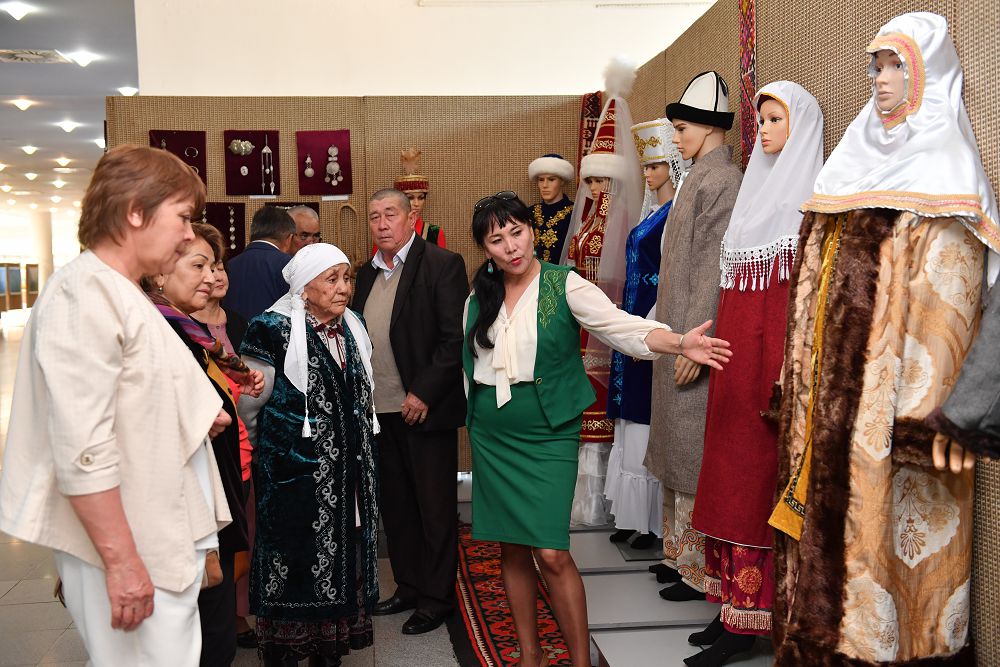Расында көрменің экспозициясы да әртүрлі, барлық тақырыпты қамтыған аса бай. Тек залдың төрінен орын алған жәдігерлердің ұзын саны – 500-ден астам. Көрме тақырыптық тұрғыдан 11 атаулы бөлімге жіктеліпті. Осылардың әрбіріне тоқталар болсақ: әуелі көзге іліккені облыстық тарихи-өлкетану музейінің бұйымдары ұлттық киімдер топтамасы. Бұл дүниелерді өңірге аты мәлім тігінші Гүлназия Есімбекова мен отбасылық шеберлер Бейісбековтер жасапты.