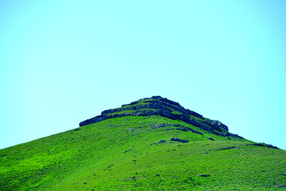 Сонымен суреттегі Қаратау сілемдерінен 300 метр биіктікте орналасқан пирамиданы өз көзімізбен көрудің сәті түсті. Уақыт мүжіген бұл пирамиданы адам тұрғызды ма, әлде Табиғат-Ананың шебер қолынан шықты ма, бір Аллаға аян. Бір ақиқаты, бұл жерде құпиясы ашылмаған жұмбақ тастар да, үңгірлер де көп. Пирамиданың дәл іргесінде Қарауылтөбе бар. Жоңғар, қалмақ шапқыншылықтары кезінде оның ішіндегі үлкен үңгірде бұл тауда елімізді қорғаған бабаларымыз дамылдап, қарауылдап жатқан деседі. Жау келе жатқанда осы төбеден түтін шығарып, белгі берген көрінеді.
