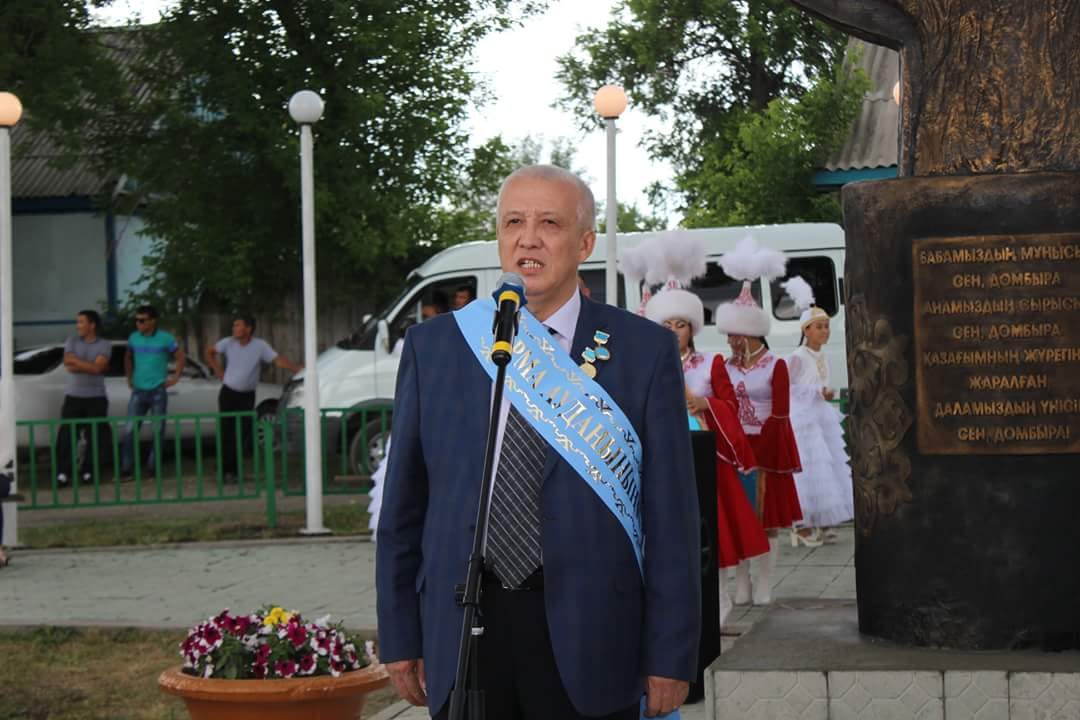 Киелі домбыра Біржан сал, Ақан сері, Жаяу Мұса, Мұхит, Кенен, Әміре Қашаубаев, Жүсіпбек Елебеков, Ғарифолла Құрманғалиев, Жәнібек Кәрменов сынды өнер тарландарының әндеріне әр берді, жандарына демеу болды. Сондықтан домбыра – кешегімізді ертеңімізге жалғайтын, ұрпақтар сабақтастығына, рухани құндылықтарымыздың арқауы үзілмеуіне дәнекер болатын баға жетпес мұра. Мемлекет басшысының «Рухани жаңғыру» бағдарламасының аясында домбыраны насихаттаудың – ұлттық болмысымызды сақтап, ертеңгі ұрпаққа аманат етуде маңызы зор. Бұл ескерткішті қазақ даласынан домбыра үні үзілмесін деген тілекпен орнаттық. Ескерткіш аумағы ұлттық мұрамызды дәріптейтін, өнердің құдіретін ұғынуға ықпал ететін қасиетті орынға айналады деп сенеміз», - деп сөзін түйіндеген аудан басшысы бұл күні Қалба өңірінің бірқатар азаматтарына ел алдында ерекше құрмет көрсетті.