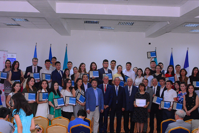 Сертификаттарды табыстау рәсіміне Францияның Қазақстандағы Елшісі Филипп Мартине, ҚР ҰҒА президенті, профессор Мұрат Жұрынов, ҚР Білім және ғылым министрлігінің жауапты хатшысы Арын Орсариев қатысып, т.б. студенттерге сәт-сапар тіледі.