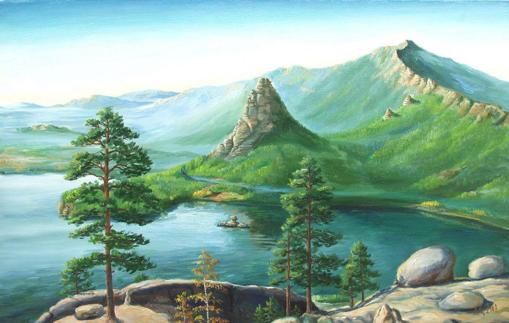 Жергілікті қылқалам шебері, кескіндемешінің көрмесіне қойылған туындыларының әрқайсысының астарында өзіндік философиялық мағына бар. «Дала», «Алтын адам», «Абылай хан», «Қанжығалы Бөгенбай», «Қанай би», «Көкшетау», «Оқжетпес» картиналары ел тарихынан сыр шертіп тұр. «Жорық алдында...» атты туындысында Абылай хан мен Бұқар жырау, Қаракерей Қабанбай, Қанжығалы Бөгенбай, батыр Баян бейнеленіп, көрерменнің көз алдына сан ғасырлар сорабын әкеледі. Бұл туынды республикалық каталогқа енген.
