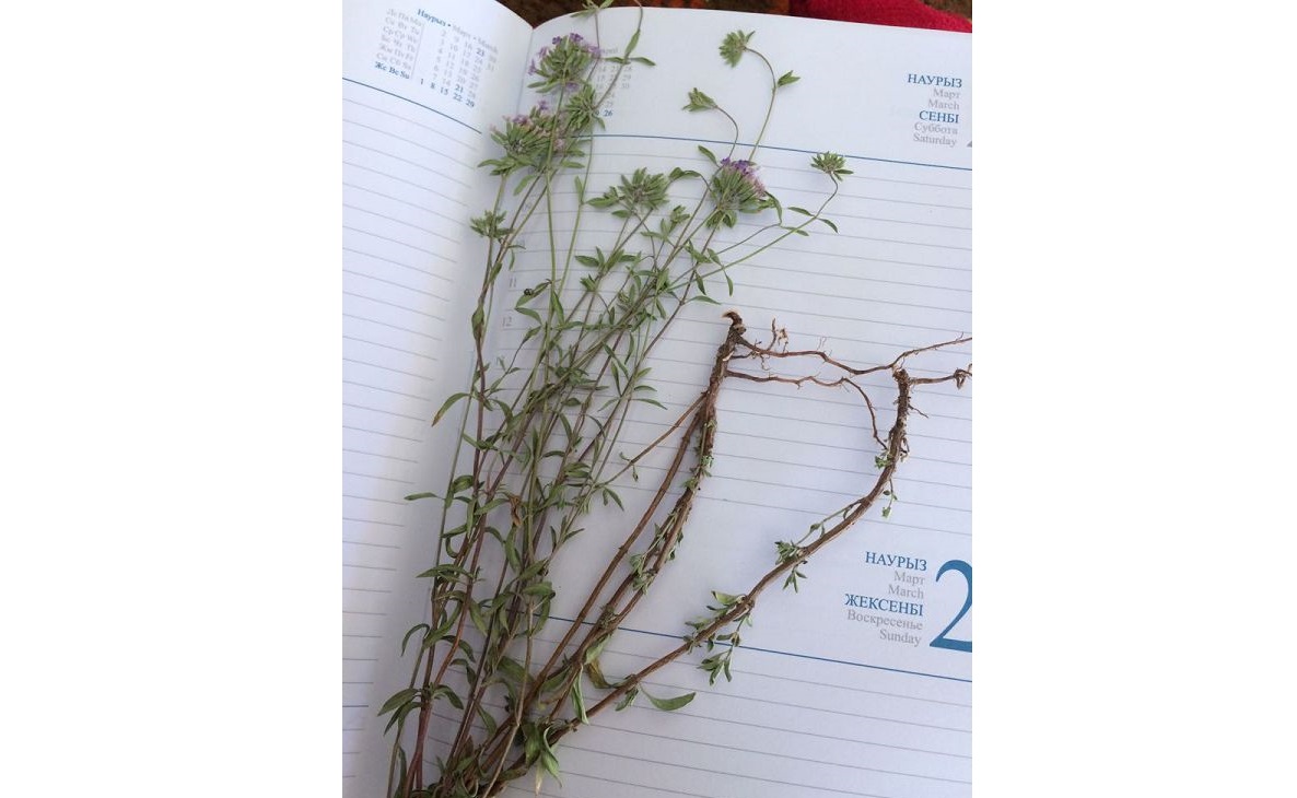 Тау басында жүргенімізді сонда білдік. Сәл көтерілгеніміз сол, иісі бұрқырай киікоты алдымыздан шықты. Көктөбеден бұлақ басына түсерде бір тал киікотын естелікке алып, күнделік дәптеріміздің бір бетіне салып қойдық. Жарықтық, иісі бұрқырап, тау басынан бізбен бірге келеді.