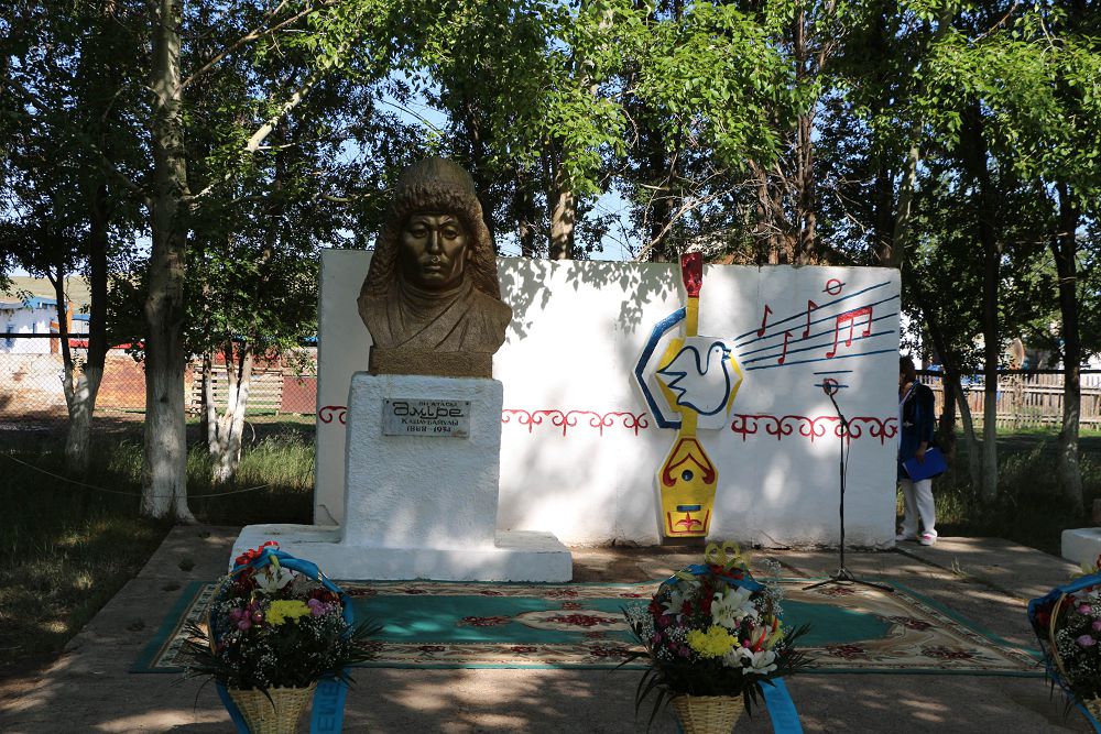 Жыл басында газетімізде кезінде Әміре Қашаубаевқа күйеужолдас болған делінетін қара күш иесі, ақбұлақтық Мәдиян Түсіпұлы, оның таудан көтеріп әкелген салмағы 100 келіге жуықтайтын тасы жайында жазған едік. Сол тасты ауыл азаматтары өңдеп, сырлап, әншінің ауылдағы ескерткішінің жанына әкеп қойыпты. Өнерпаздың тойына жан-жақтан келген қонақтар алып тасты қызыға тамашалап жатты.