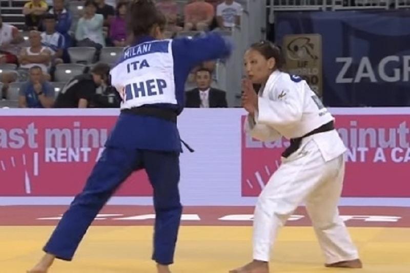 48 келі салмақ дәрежесінде қола медаль үшін сынға түскен отандасымыз италиялық дзюдошы Франческу Миланиді жеңіп, жүлделі үшінші орыннан көрінді.