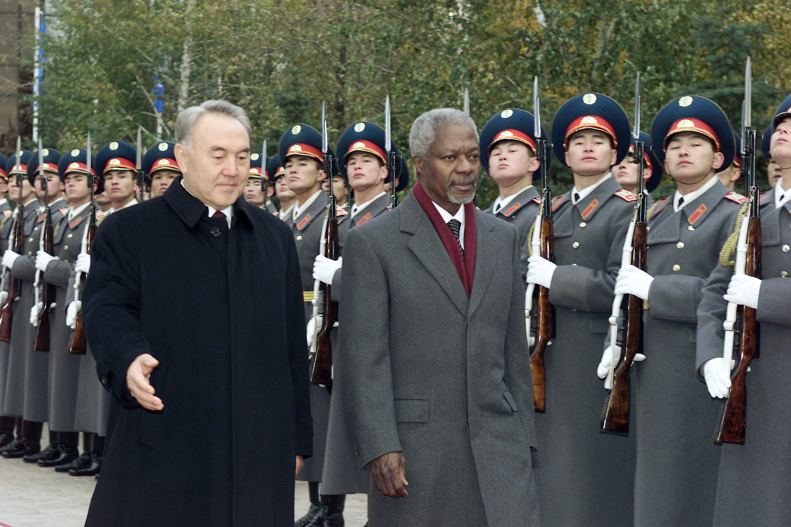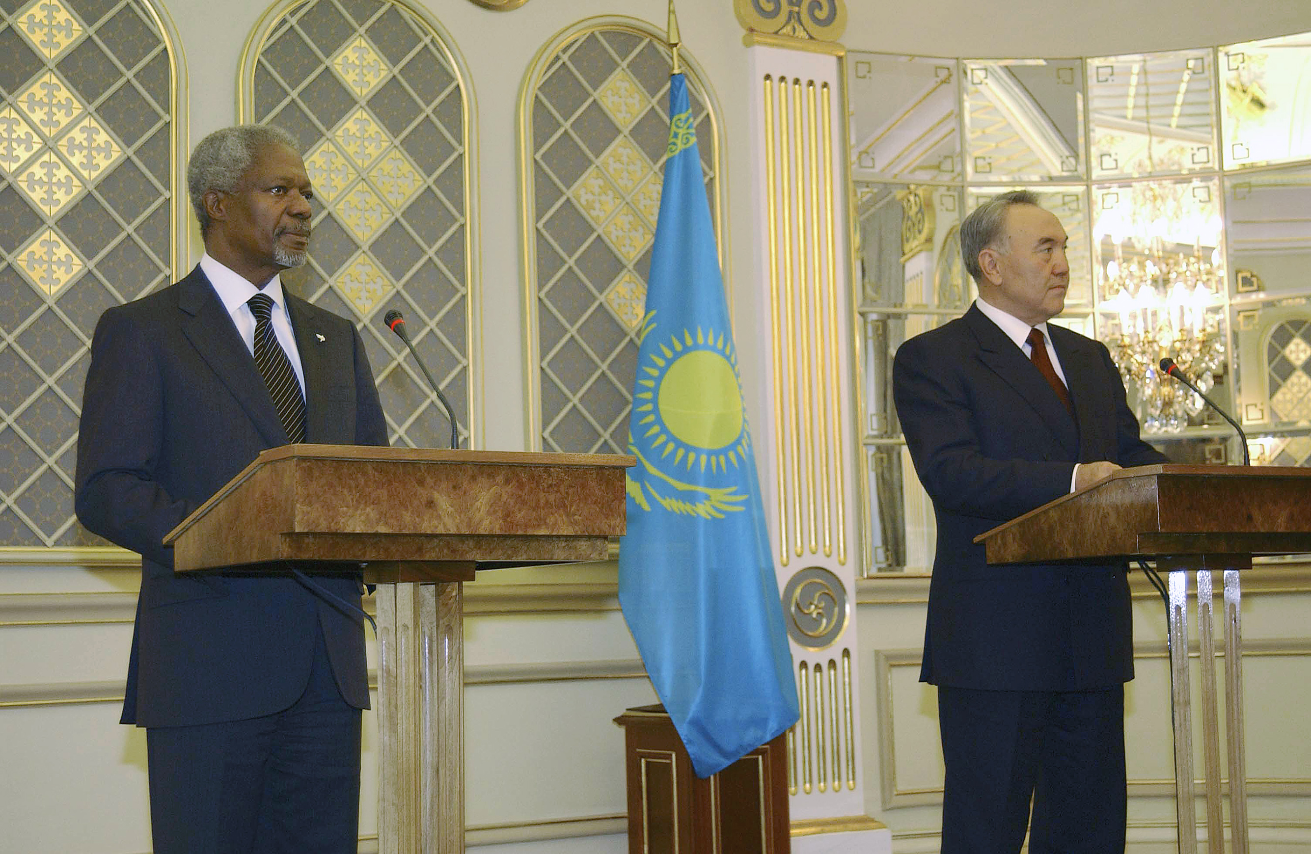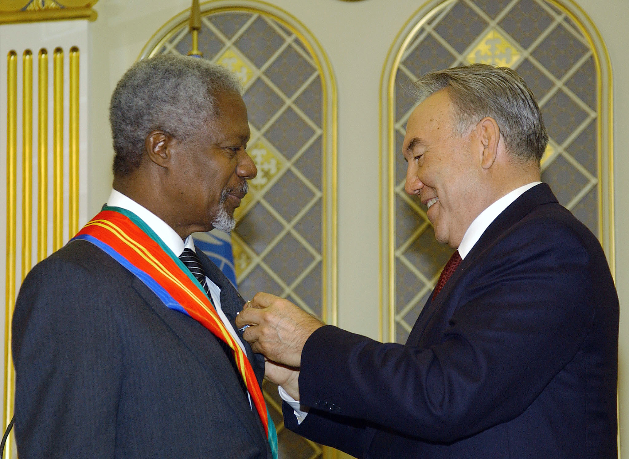 «Нарықтық экономикаға өтуде үлкен нәтижелерге қол жеткіздіңіз, экономика мен инвестицияның айтарлықтай өсуін қамтамасыз еттіңіз, елдегі тұрақтылықты сақтай білдіңіз, аймақтық қақтығыстарды болдырмау жолында қандай көшбасшы болу керектігін көрсеттіңіз, ядролық қарусыздануға қатысты батыл шешім қабылдадыңыз», - деп атап өтті Бас хатшы. Сонымен қатар, К.Аннан Қазақстанды әлемнің басқа мемлекеттері үшін ұлтаралық келісім, тұрақты әрі орнықты дамудың үлгісі ретінде атап көрсетті.