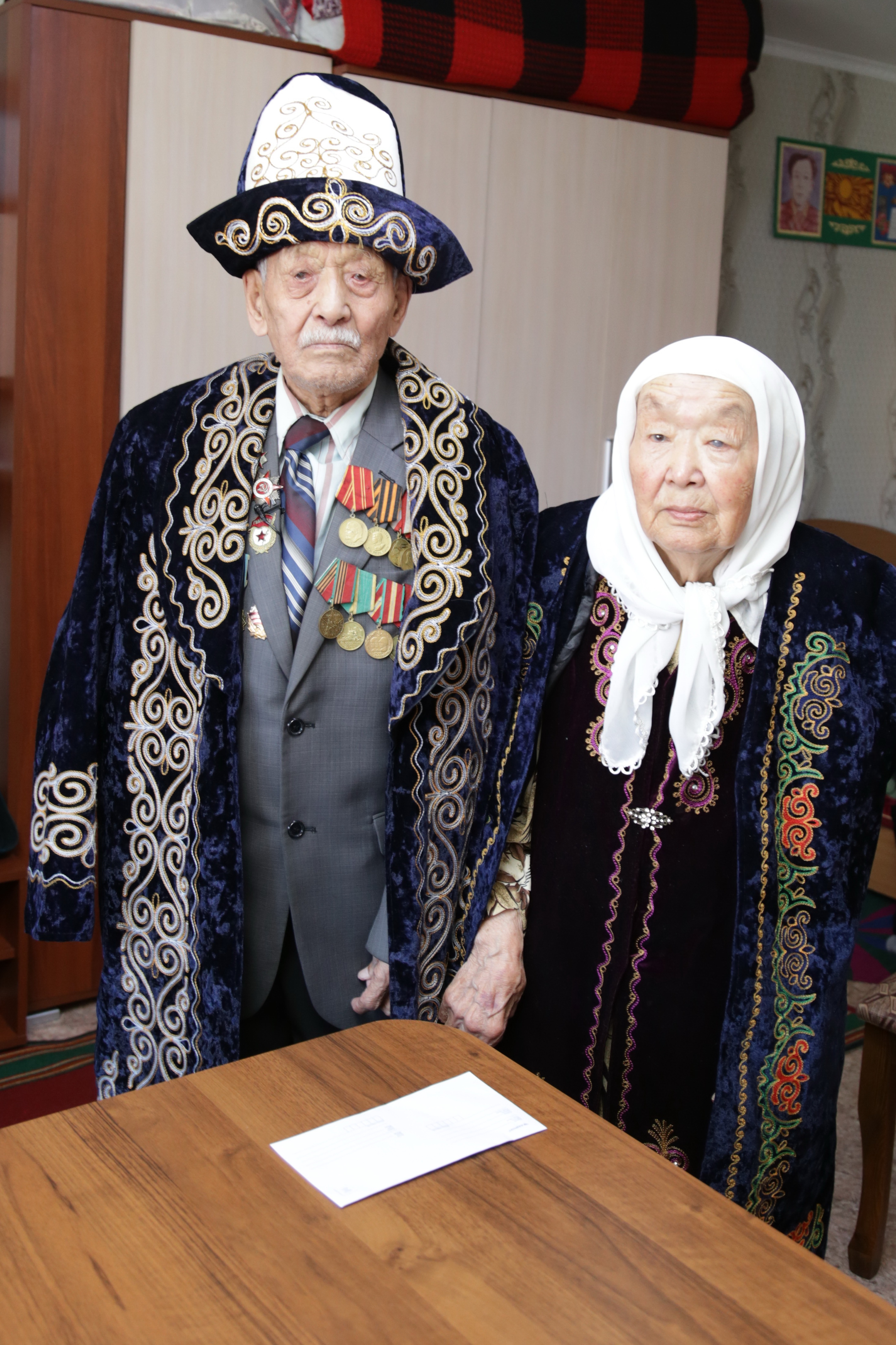 Ерік Есімұлы бір шаңырақ астында 70 жыл түтін түтетіп, мәуелі бәйтерек секілді тамырын тереңге жайған қос қарияға саулық тілеп, иықтарына шапан, қамзол жапты. Басқа да тарту-таралғылар жасады.