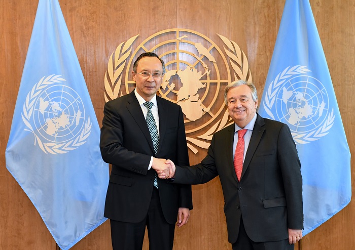 А. Гутерриш Каспий теңізіндегі Ақтау саммитінің тарихи маңыздылығын атап өтіп, БҰҰ Орталық Азия мемлекеттерінің ынтымақтастығын одан әрі нығайтуға дайын екендігін білдірді. Ол Қазақстан бастамасымен ұсынылған «Терроризмнен азат әлемге қол жеткізу» үшін мінез-құлық Кодексін қолдайтындығын айтты. «Біз әлемнің берік тірегі болып табылатын Президент Н. Назарбаевтың бастамаларын жоғары бағалаймыз. Қазақстанның БҰҰ Қауіпсіздік Кеңесіндегі конструктивті рөлі өте маңызды. Сіздің еліңіз даналықтың дауысы және көпірлерді орнатудың жақтаушысы болып табылады», - деді Бас хатшы. А. Гутерриш Астананың Сириядағы дағдарысты реттеудегі рөлін ерекше атап өтті. Бұның салдарынан ең нашар сценарийді дамытуға жол берілмеді. БҰҰ Бас хатшысының айтуынша, Қазақстан дипломатиясының рөлі елдер мен діндер арасындағы өзара түсіністікті нығайтуда өте оң болып бағаланады.