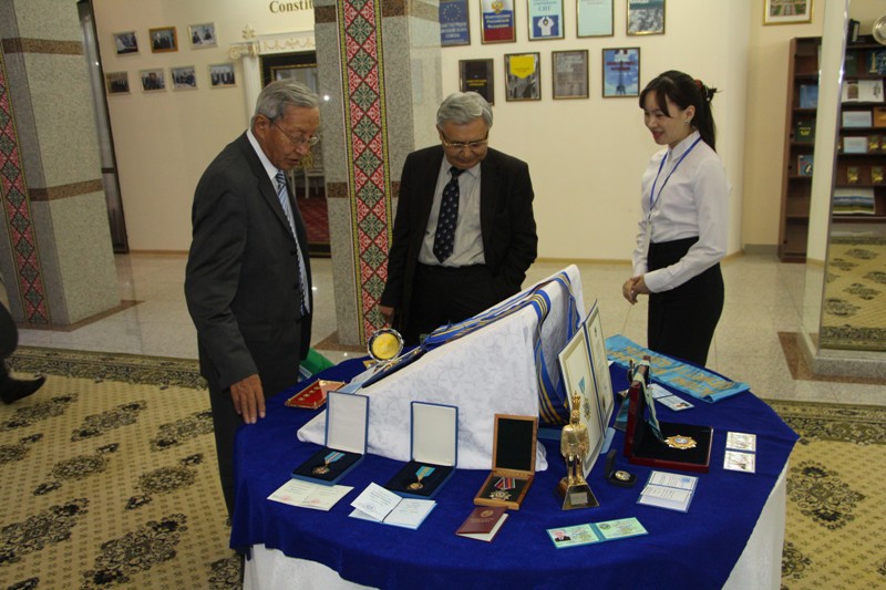 بۇدان 4 جىل بۇرىن ءومىر بويى جيناعان 10 مىڭنان استام كىتابىن ۇلتتىق اكادەميالىق كىتاپحاناعا سىيعا تارتقان عالىم بۇل جولى دا سودان بەرگى جينالعان كىتاپتارى مەن وردەن, مەدالدارىن اكەلىپتى. كورمەگە كورنەكتى تۇلعانىڭ ءار جىلدارى العان 79 مەدال, 4 وردەنى قويىلعان.