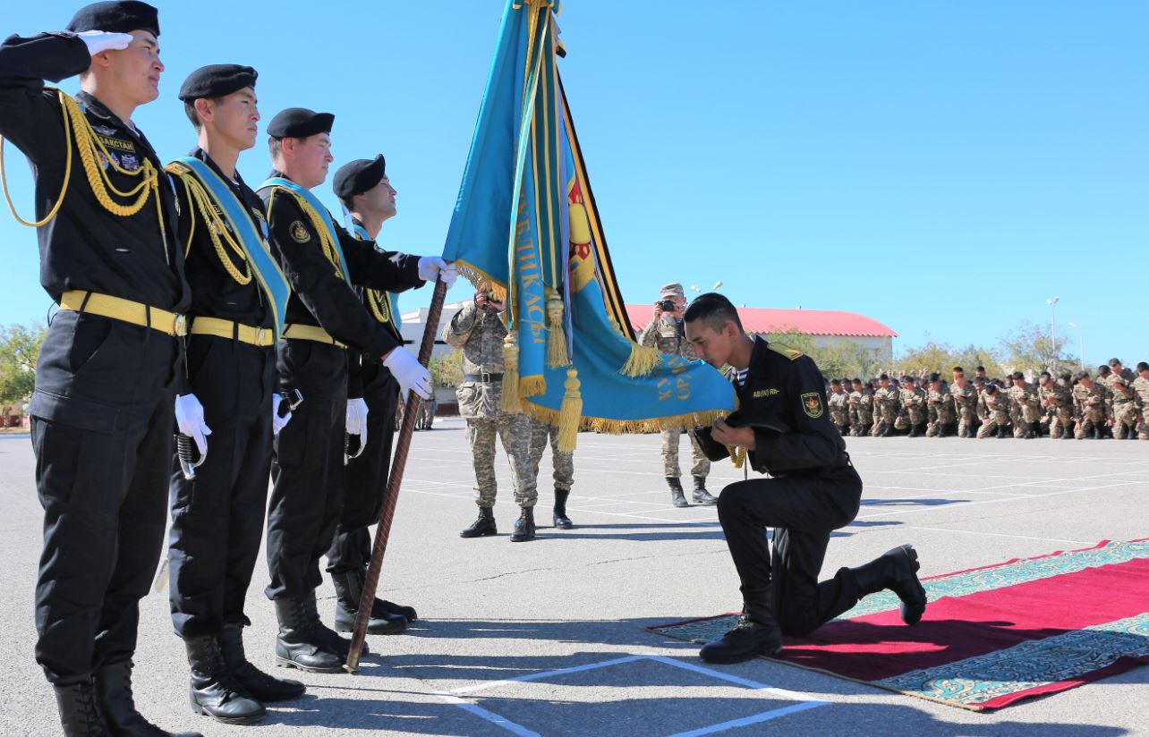Сарбаздардың әскери бөліммен қоштасу іс-шарасы салтанатты түрде Ақтау, Ақтөбе және Атырау әскери бөлімдерінің жауынгерлік туымен қоштасу ғұрыпымен аяқталды. Бір жыл бойы сарбаздар жауынгерлік мамандықты меңгеріп, жауынгерлік даярлықта айтарлықтай жетістіктерге жетті. Олар өздерінің машықтылығын көптеген оқу-жаттығулары мен «Батыс-2018» стратегиялық командалық-штабтық оқу-жаттығуы кезінде көрсете алды.