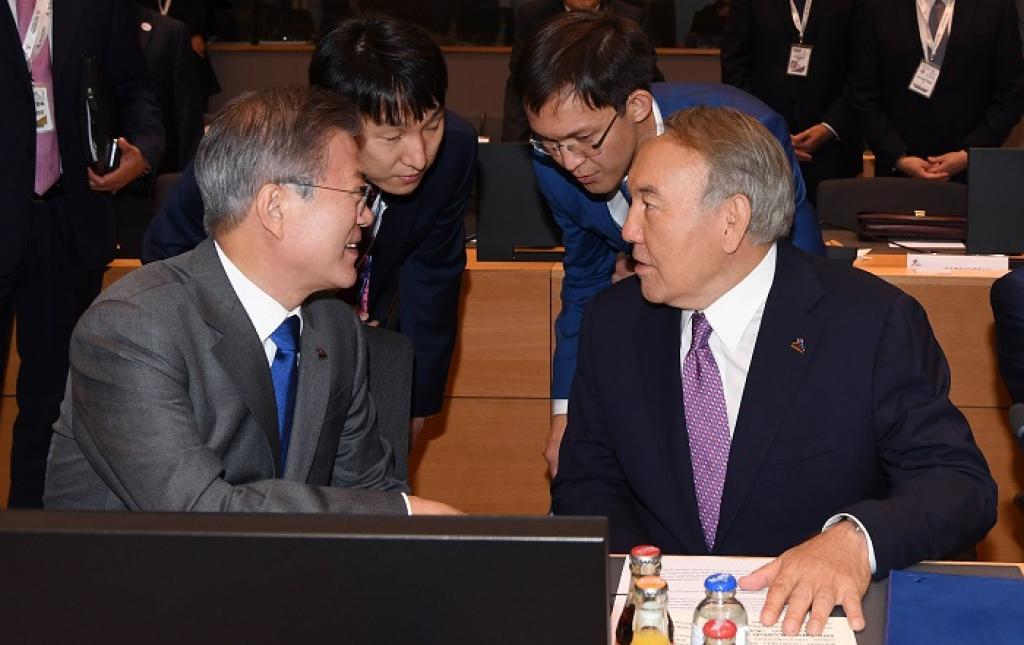 Саммит барысында Нұрсұлтан Назарбаев Жапония Премьер-Министрі Синдзо Абэмен және Корея Республикасының Президенті Мун Чжэ Инмен кездесті.