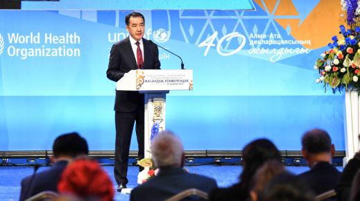 Бүгін Астанада «Алматыдан басталған денсаулық сақтау қызметтерімен жаппай қамтуға және тұрақты даму мақсаттарына» атты Медициналық-санитариялық алғашқы көмек көрсетуге арналған жаһандық конференция басталды. ҚР Премьер-Министрі Б. Сағынтаев конференцияның ашылу салтанатына және жоғары деңгейлі сессияға қатысты.